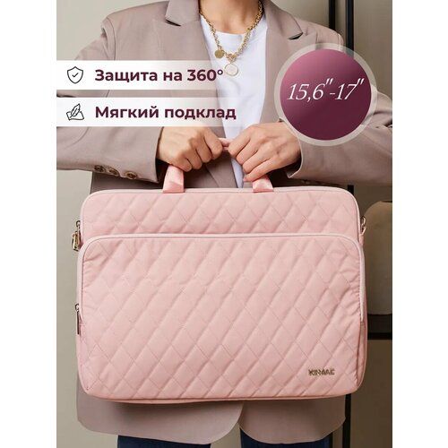 Найти - Сумка для ноутбука 15.6, 16 и 17 дюймов KINMAC с ремнем на плечо и большим карманом спереди (Розовая)