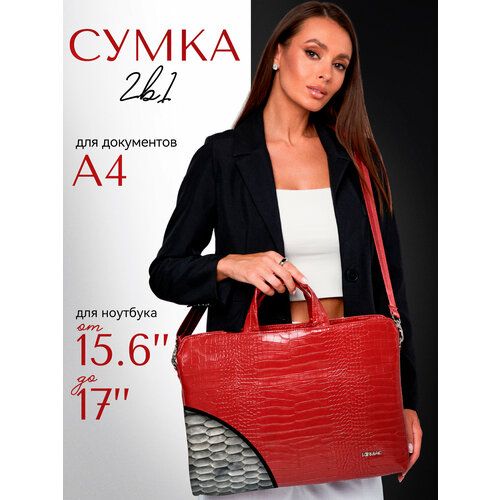 Сумка имеет три отделения. Основное для ноутбука и дополнительные два для аксессуаров, в которых Вы с легкостью разместите зарядку, мышь, документы А4, а так же кучу женских штучек: зеркало, расческу, смартфон, косметичку. Этот лаконичный и стильный кейс из лакированной экокожи впишется в офисный образ, но подойдет и любителям повседневного стиля. Также в сумке есть множество карманов и отделений для хранения мелочей.
