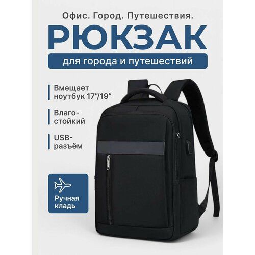 Черный рюкзак из водоотталкивающей ткани имеет оптимальный размер, что делает его удобным для мужчин и женщин, работников офиса, отдыхающих, школьников и студентов. Рюкзак также прекрасно подходит для транспортировки ноутбуков с диагональю 17 дюймов ( есть специальное отделение на липучке) и является отличным решением для ручной клади в путешествиях.