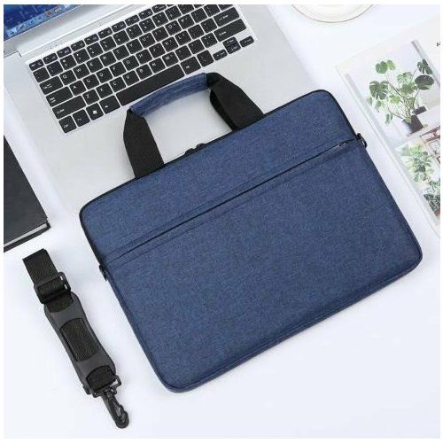 Найти - Сумка для ноутбука 14, полиэстер, крепкие ручки, плечевой ремень, синяя
