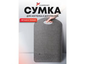 Сумка-чехол Flexpocket, экокожа, серая, для ноутбука до 16", вертикальная 4398122063