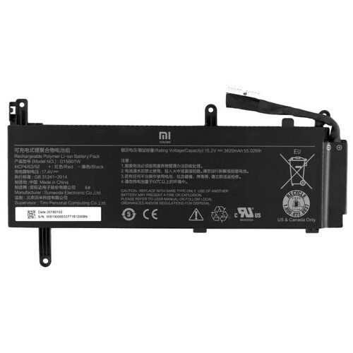 Аккумулятор Xiaomi G15B01W обладает емкостью 3620mAh и напряжением 15.2V, что гарантирует стабильную работу и продолжительное время автономной работы вашего ноутбука.