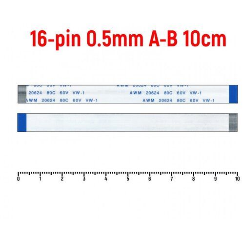 Найти - Шлейф FFC 16-pin Шаг 0.5mm Длина 10cm Обратный A-B AWM 20624 80C 60V VW-1
