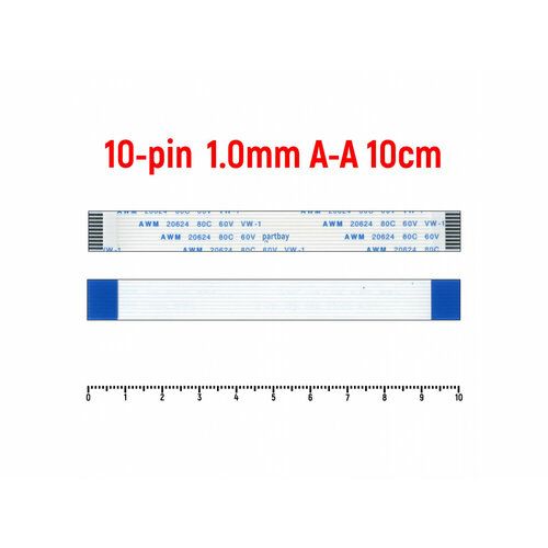 Найти - Шлейф FFC 10-pin Шаг 1.0mm Длина 10cm Прямой A-A AWM 20624 80C 60V VW-1