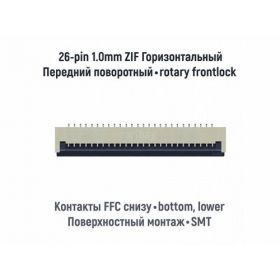 Горизонтальный ZIF коннектор монтируется на PCB плату методом поверхностного монтажа (SMT).