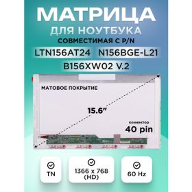 Совместимые партномера (аналоги): N156BGE-L21, LTN156AT05, LTN156AT24, N156B6-L0B, LTN156AT02, B156XW02 V.2, N156BGE-L11, B156XW02 V.6, N156BGE-L21 REV. C1, NT156WHM-N50, N156B6-L0B Rev. C1, LTN156AT27, LTN156AT15, LTN156AT32, LTN156AR21, CLAA156WB11A, LTN156AT16, N156BGE-L11 REV. C1, BT156GW01, B156XW02 V.3, HB156WX1-100, C850-D1W, LTN156AT09, LTN156AT17, B156XTN02.2, N156B6-L0B Rev. C2, N156B6-L06, CLAA156WA11A, LTN156AT05-H01, BT156GW01 V.A, LTN156AT03, N156B6-L0B Rev. C3, LTN156AT24-803, LTN156AT05-W01, HT156WXB-100, N156B6-L04, N156B6-L0A, LTN156AT05-U09, HB156WX1-200, BT156GW01 V.6, LTN156AT02-C07, LTN156AT05-S01, LTN156AT09-H02, LTN156AT15-C01, LTN156AT24-802, LTN156AT24-C01, LTN156AT26, LTN156AT27-H02, B156XW02 V.1, LTN156AT15-C04, LTN156AT26-N01, N156B6-L06 Rev. C1, B156XW02 V.7, BT156GW02, LTN156AR21-002, LTN156AT24-B01, LTN156AT24-T01, N156BGE-L11 REV. C2, B156W02, BT156GW01 V.3, BT156GW02 V.0, LTN156AT24-L01, LTN156AT32-001, BT156GW01 V.2, LTN156AT05-J01, LTN156AT09-H03, LTN156AT10, LTN156AT23, LTN156AT24-C02, LTN156AT32-L01, B156XTN02.0, BT156GW01 V.4, HT156WXB-500, LTN156AT02-A04, LTN156AT02-D01, LTN156AT02-L01, LTN156AT05-802, LTN156AT22, LTN156AT24-P01, N156B6-L04 Rev. C1, N156B6-L0A REV. C3, N156BGE-L21 REV. C2, CLAA156WB11, LTN156AT02-D09, LTN156AT05-001, LTN156AT05-601, LTN156AT05-701, LTN156AT05-H07, LTN156AT10-503, LTN156AT15-C03, LTN156AT16-L01, LTN156AT17-101, LTN156AT27-H01, LTN156AT27-H04, N156B6-L03, N156B6-L0A REV. C2, N156BGE-L21 REV. A1, B156XTN02.3, B156XW02 V.2 HW4A, CLAA156WA11, CLAA156WB11S, E156WA1, LTN156AR15, LTN156AR15-003, LTN156AT05-307, LTN156AT05-B01, LTN156AT05-F01, LTN156AT05-T01, LTN156AT10-L01, LTN156AT24-401, LTN156AT24-W, LTN156AT27-B01, LTN156AT27-W01, LTN156AT32-401, LTN156AT32-T01, M156NWR2.