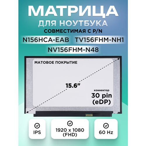 Найти - Экран / матрица для ноутбука 15.6 N156HCA-EAB, TV156FHM-NH1 и др коннектор 30 pin, 1920x1080, IPS матовая без креплений
