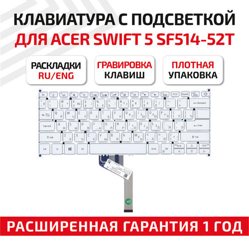 Найти - Клавиатура (keyboard) для ноутбука Acer Swift 5 SF514-52T с подсветкой, серебристая (102-016m2lha02c)