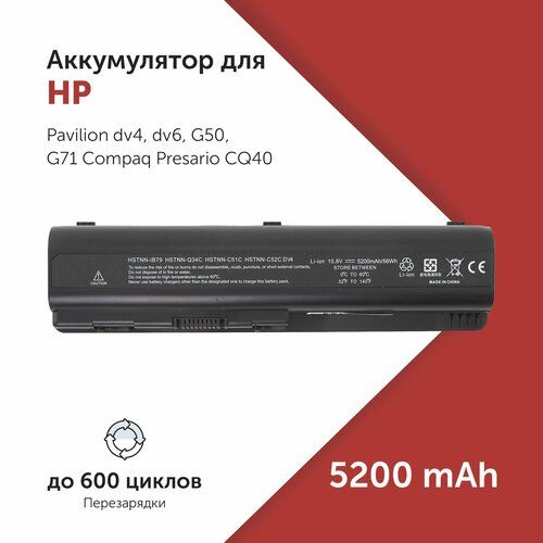 Найти - Аккумулятор HSTNN-LB72 для ноутбука HP Pavilion dv4 / dv6 / G50 / G71 / Compaq Presario CQ40 / CQ61 / CQ70 (KS524AA, NH493AA, HSTNN-CB72) 5200 мА·ч