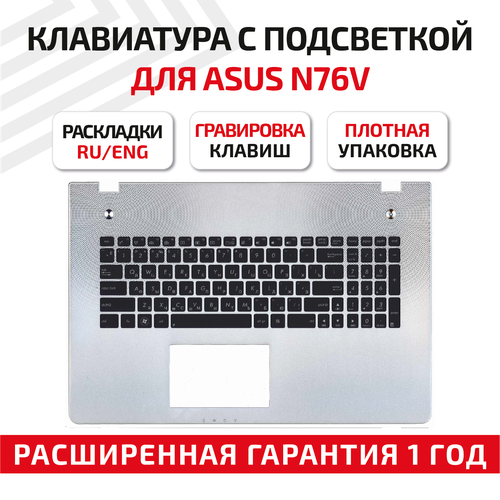 Найти - Клавиатура (keyboard) 9Z. N8BBU. G0R для ноутбука Asus N76, N76VB, N76VJ, N76VM, N76VZ, черный, топ-панель серебристая с подсветкой