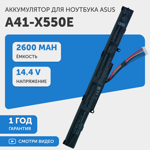 Аккумулятор (АКБ, батарея) A41-X550E для ноутбука Asus X450J, 15В, 2600мАч, черная, отличается высоким качеством. АКБ оснащен защитой от перегрева, перегрузки и короткого замыкания, снижен риск утечки электролита.