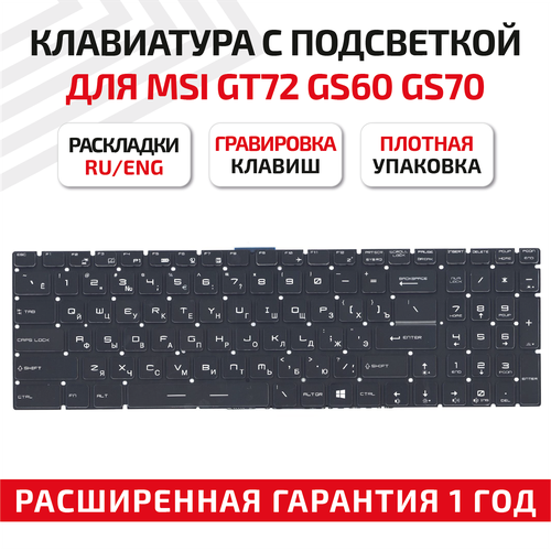Найти - Клавиатура (keyboard) V143422AK для ноутбука MSI GS60, GS62, GS63, GS70, GE62, GE63, GE72, GE73, GT72, PE60, PE70, GL62, GL72, черный с подсветкой