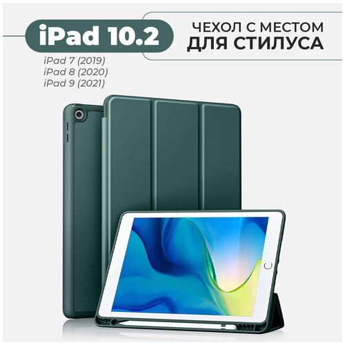 Найти - Чехол для Apple iPad 7 10.2 (2019) / iPad 8 10.2 (2020) / iPad 9 10.2 (2021) с отделением для стилуса, тёмно-зелёный