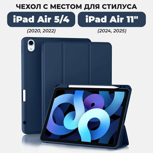 Найти - Чехол для iPad Air 11 и iPad Air 5 / Air 4 с местом для стилуса, тёмно-синий