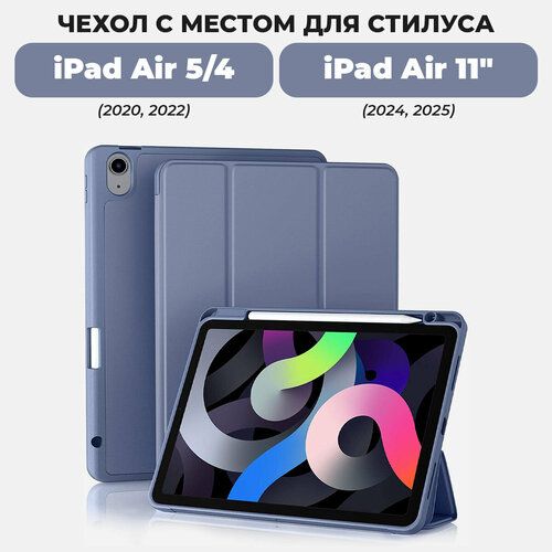 Найти - Чехол для iPad Air 11 и iPad Air 5 / Air 4 с местом для стилуса, серо-синий
