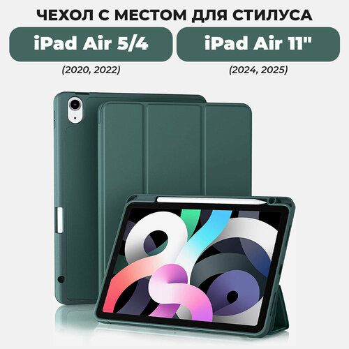 Найти - Чехол для iPad Air 11 и iPad Air 5 / Air 4 с местом для стилуса, тёмно-зелёный