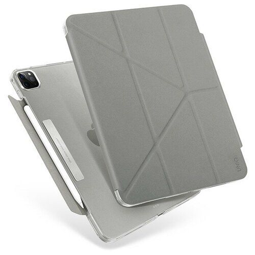 Защитный чехол для iPad с прозрачной задней частью и флипом, который можно использовать в виде многопозиционной подставки. Прозрачная задняя панель не скрывает оригинальный дизайн гаджета. Цветовая гамма Uniq CAMDEN совпадает с линейкой iPad Pro, поэтому чехол идеально гармонирует с планшетом. Крышка из эко-кожи легко трансформируется в Y-образную подставку, которая позволяет располагать iPad в трех позициях, благодаря чему Вы легко можете переключаться между альбомной и портретной ориентацией, подбирая оптимальный угол обзора для просмотра контента или общения. Имеет чёткие вырезы под камеру, динамик, регулятор громкости, внешние порты и Touch ID.