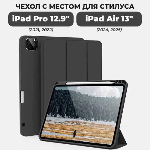 Найти - Чехол для планшета Apple iPad Pro 12.9 (2022, 2021) и iPad Air 13 с местом для стилуса, чёрный