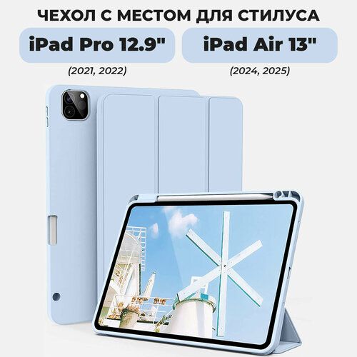Найти - Чехол для планшета Apple iPad Pro 12.9 (2022, 2021) и iPad Air 13 с местом для стилуса, голубой