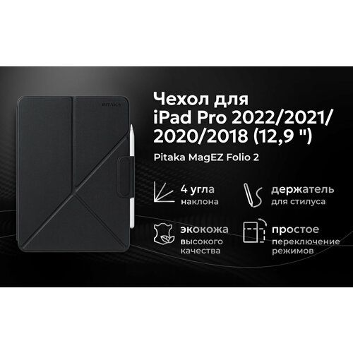 Pitaka MagEZ Folio 2 — стильный и функциональный чехол для вашего iPad Pro. Этот чехол сочетает в себе продуманный дизайн, высококачественные материалы и практические возможности для защиты и удобства использования вашего устройства.