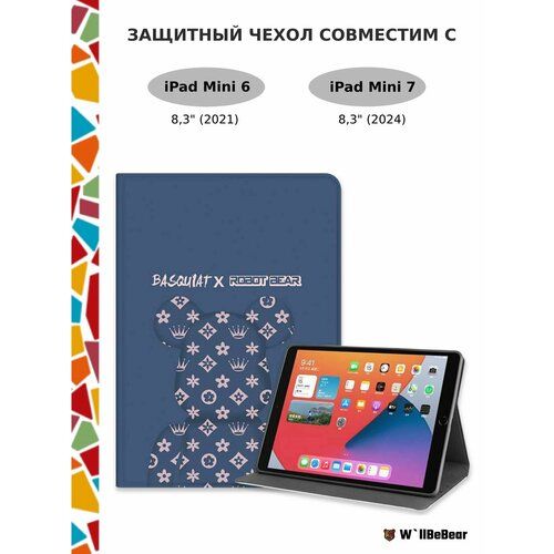 Найти - Чехол на планшет Apple iPad Mini 6-го поколения (2021г.), iPad Mini 7-го поколения (2024г.) 8,3 (Bearbrick синий)
