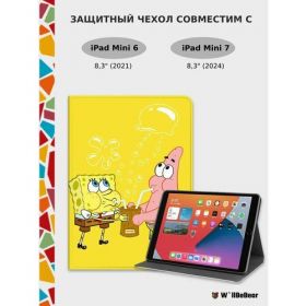 Подарите своему планшету Apple iPad Mini 6-го поколения (2021 г.) и iPad Mini 7-го поколения (2024 г.) стильный и надежный чехол с изображениями любимых персонажей из мультфильма "Губка Боб Квадратные штаны". Этот чехол для iPad Mini (2021) 6-го поколения и Mini 7 (2024) с диагональю 8,3 дюйма сочетает в себе привлекательный дизайн и функциональные особенностями, что делает его идеальным выбором для всех поклонников забавного губки.