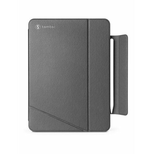 Стильный высококачественный магнитный чехол-книжка Tomtoc (283x225x18 мм) разработан для максимально комфортного использования с устройствами Apple iPad Pro 12.9 4, 5 поколений 2021, 2022 года. Для чтения, просмотра роликов, рисования, внесения заметок или видеосвязи Вы можете использовать четыре разных режима фиксации кейса или убрать заднюю накладку чехла и пользоваться аксессуаром без нее. Специально подобранные углы наклона обеспечат удобное положение для работы и отдыха. Передняя крышка имеет застежку на магните и оснащена функцией автоматического включения/выключения при открытии/закрытии аксессуара. Используя чехол, Вы экономите заряд Вашего устройства. В боковую часть кейса встроено отделение для стилуса (Apple Pencil), благодаря чему Вы можете надежно хранить девайс и минимизировать его повреждения. Более того доступна функция беспроводной зарядки Apple Pencil непосредственно в чехле. Каркас книжки изготовлен из термопластичного полиуретана, который отличается повышенной прочностью и доказанно защ