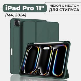 Найти - Чехол для планшета iPad Pro 11 (M4, 2024) с местом для стилуса, темно-зеленый