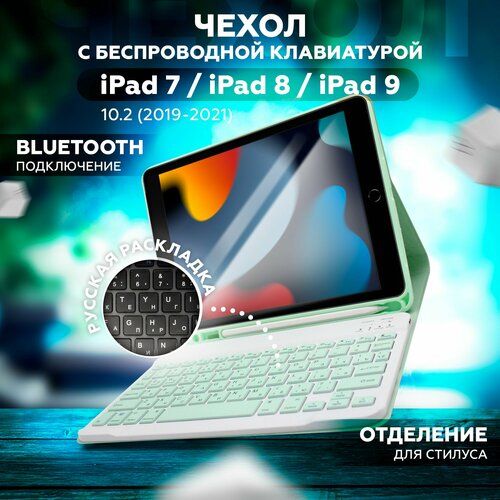 Найти - Чехол для iPad 10.2 7/8/9, чехол ipad 10.2, чехол клавиатура для iPad 10.2, мятно-зеленый