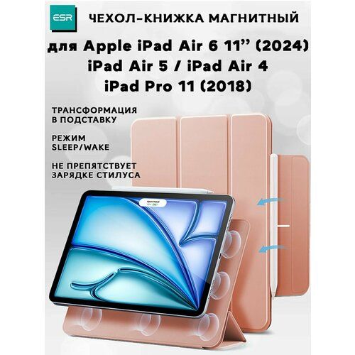 НАЙТИ ВЫГОДНЕЕ - Чехол книжка ESR Rebound Magnetic Case с застежкой для Apple iPad Air 6 11 (2024), Air 5, Air 4, iPad Pro 11 (2018), розовое золото