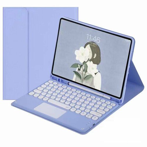 Чехол для планшета выполнен в светло-фиолетовом цвете, который сочетается с сенсорной клавиатурой светло-фиолетового цвета.