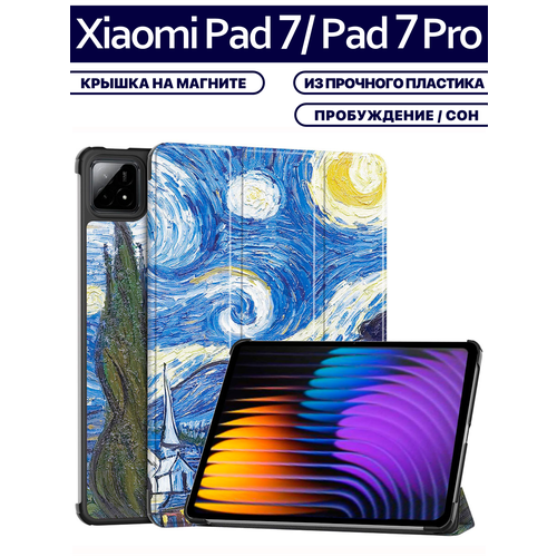 Найти - Чехол для планшета Xiaomi Pad 7 / Pad 7 Pro (11.2 дюйма), с магнитом и рисунком (Звездная ночь)
