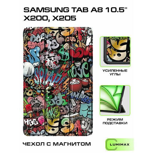Найти - Чехол для Samsung Tab A8 (10.5) (X200, X205) с магнитом, с рисунком граффити