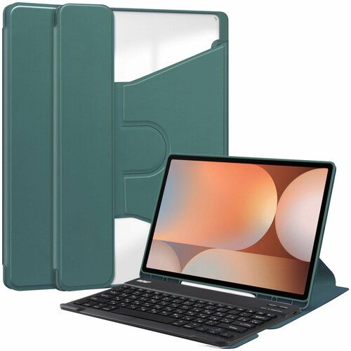 • Беспроводная клавиатура примагничивается к чехлу. Вы также можете отсоединить ее и использовать в отдалении от устройства либо привязать ее по Bluetooth как к компьютеру, так и к телефону. Радиус действия - до 10 метров