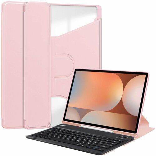 • Беспроводная клавиатура примагничивается к чехлу. Вы также можете отсоединить ее и использовать в отдалении от устройства либо привязать ее по Bluetooth как к компьютеру, так и к телефону. Радиус действия - до 10 метров