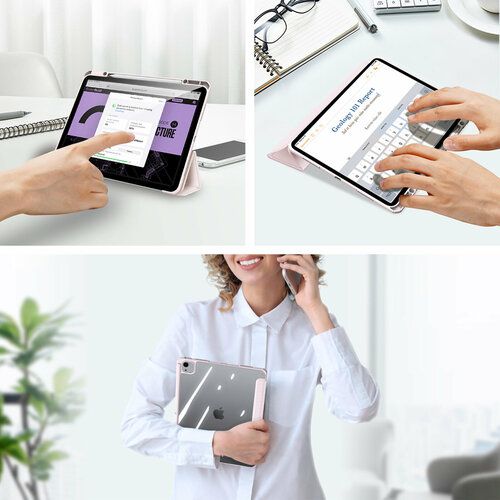 Сам планшет, стилус, и другие предметы, изображенные на фото, в комплект не входят. Только чехол для планшета Подходит для моделей - A2898, A2899, A2900, A1876, A2014, A1895, A1983, A2229, A2069, A2232, A2233, A2378, A2461, A2379, A2462, A2436, A2764, A2437 и A2766. Модель указана на задней крышке планшета. Совершенно новый стильный чехол Toby series от проверенного бренда Dux Ducis прекрасно защитит ваш планшет от потертостей, сколов, царапин и пыли. Изготовлен чехол из высококачественной искусственной кожи, он приятен на вид и на ощупь, не скользит в руках и не имеет запаха. Приятные глазу расцветки подойдут на любой вкус. Все технические отверстия под кнопки, камеру или гарнитуру выполнены идеально по размеру и расположению. Задняя часть чехла сделана прозрачной, что позволяет защищать ваш планшет не скрывая его. Чехол оснащен магнитами, что помогает экономить время во время открытия и закрытия, при этом не позволяя чехлу самопроизвольно раскрываться. При закрытии срабатывает режим сна. Одним движением чехол трансформируется в горизонтальную подставку, позволяющую удобно расположить планшет на любой поверхности и освободить руки.