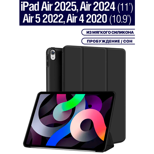 Найти - Чехол на Apple iPad Air 11 2025 (M3), Air 11 2024 (M2), Air 5 2022, Air 4 2020, из мягкого силикона, трансформируется в подставку (черный)
