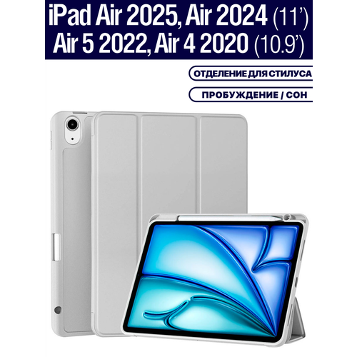 Найти - Чехол на Apple iPad Air 11 2025 (M3), Air 11 2024 (M2), Air 5 2022, Air 4 2020, держатель для стилуса (серый)