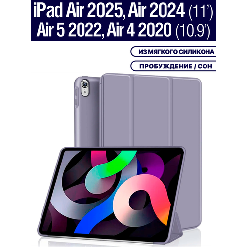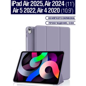 Найти - Чехол на Apple iPad Air 11 2025 (M3), Air 11 2024 (M2), Air 5 2022, Air 4 2020, из мягкого силикона, трансформируется в подставку (дымчато-фиолетовый)