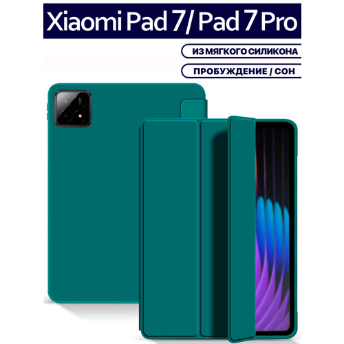 Найти - Чехол для планшета Xiaomi Pad 7 / Pad 7 Pro (11.2 дюйма), из мягкого силикона, темно-зеленый