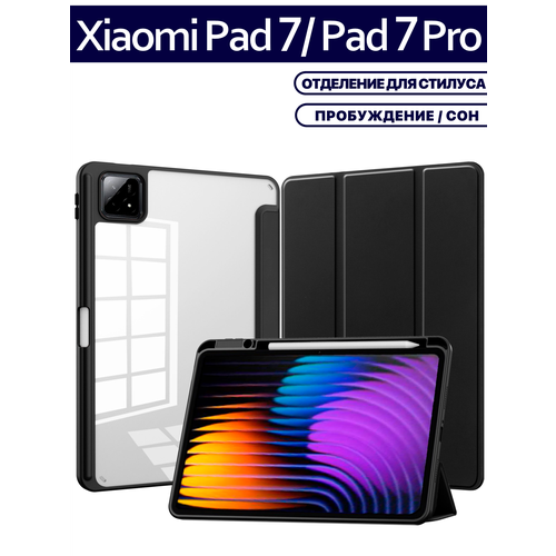 Найти - Чехол для планшета Xiaomi Pad 7 / Pad 7 Pro (11.2 дюйма), микрофибра, держатель для стилуса, черный