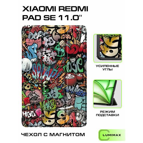 Найти - Чехол для Xiaomi Redmi Pad SE 11.0 с магнитом, с рисунком граффити