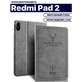Найти - Чехол для планшета Xiaomi Redmi Pad 2 (11 дюймов), кожаный с тиснением, винтажный стиль, серый