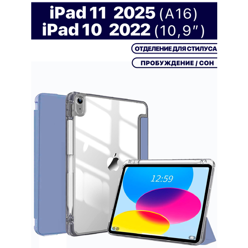 Найти - Чехол для планшета Apple iPad 2025 (A16), iPad 10 2022 (A3354 A3355 A3356 A2696 A2757 A2777) 10.9, отделение для стилуса (дымчато-фиолетовый)