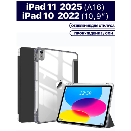 Найти - Чехол для планшета Apple iPad 2025 (A16), iPad 10 2022 (A3354 A3355 A3356 A2696 A2757 A2777) 10.9, отделение для стилуса (черный)