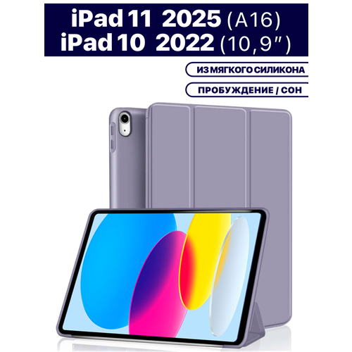 Найти - Чехол для планшета Apple iPad 2025 (A16), iPad 10 2022 (A3354 A3355 A3356 A2696 A2757 A2777) 10.9, из мягкого силикона, трансформируется в подставку (дымчато-фиолетовый)
