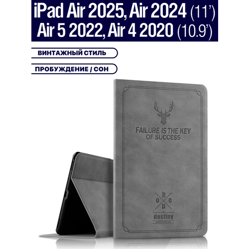 Найти - Чехол на Apple iPad Air 11 2025 (M3), Air 11 2024 (M2), Air 5 2022, Air 4 2020, кожаный с тиснением, винтажный стиль (серый)