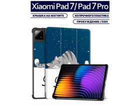 Чехол для планшета Xiaomi Pad 7 / Pad 7 Pro (11.2 дюйма), с магнитом и рисунком (Сонный кот) 4455689352