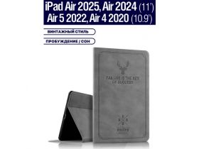 Чехол на Apple iPad Air 11 2025 (M3), Air 11 2024 (M2), Air 5 2022, Air 4 2020, кожаный с тиснением, винтажный стиль (серый) 4616574508