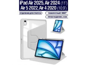 Чехол на Apple iPad Air 11 2025 (M3), Air 11 2024 (M2), Air 5 2022, Air 4 2020, микрофибра, держатель для стилуса, поворотный 360 градусов (серый) 4616600458